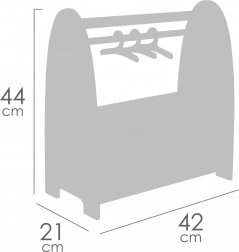 La barra appendiabiti con 3 grucce in legno e la mensola superiore facilitano l’appensione e la suddivisione dei vestitini fino a una lunghezza di ca. 19 cm.