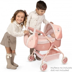 Il delizioso passeggino per bambole della collezione Tulipe unisce il meraviglioso design spagnolo alla praticità per il gioco di tutti i giorni. Le delicate tonalità pastello salmone con motivo floreale e la borsa a tema a forma di tulipano lo rendono un regalo perfetto per bambini dai 3 anni.