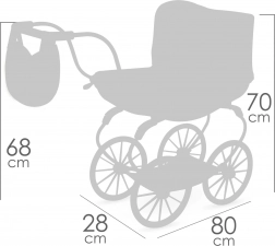 Le pratiche molle consentono di dondolare, la capottina richiudibile protegge la bambola e le grandi ruote garantiscono stabilità durante le passeggiate.