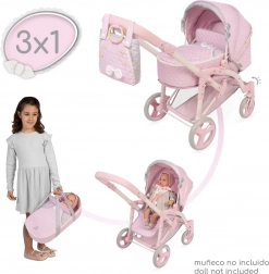 Passeggino pieghevole per bambole 3 in 1 con borsa portatile Sophie 75 cm