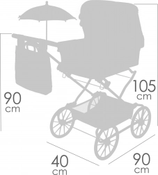 La ricca dotazione comprende parasole pieghevole, elegante borsa rimovibile, copertura della navicella con bottoni a pressione e taschine, morbido materassino e copertina in peluche. Il pratico cestino inferiore offre spazio per gli accessori. La robusta struttura in metallo combinata con tessuto e plastica garantisce resistenza e facile manutenzione. Il modello è compatto da riporre ed è adatto al gioco in casa e all’aperto.