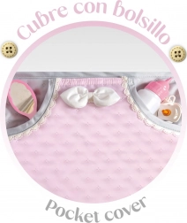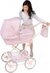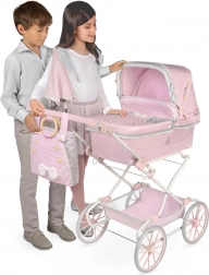 Colorazione rosa chiaro, fiocchetti e pizzi decorativi. Inclusi parasole, borsa, copertura della navicella, materassino e morbida copertina.