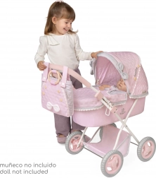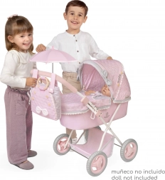 Scoprite il romantico passeggino per bambole della collezione SOPHIE con delicate merletti e fiocchetti. Il colore rosa chiaro, combinato con dettagli grigi e bianchi, crea un effetto incantevole e valorizza il design spagnolo e la lavorazione accurata. Il meccanismo pieghevole assicura una comoda sistemazione e trasporto, così il passeggino è pronto per il gioco in casa e all’aperto.