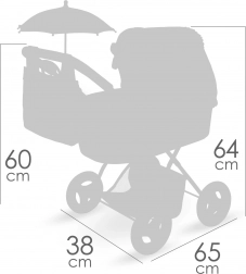 Inclusi un pratico parasole, una borsa rimovibile e una copertura per la navicella con occhielli per un fissaggio sicuro. Il morbido materassino e la navicella spaziosa offrono comfort alla bambola, mentre il cestino inferiore fornisce spazio per piccoli oggetti e accessori.