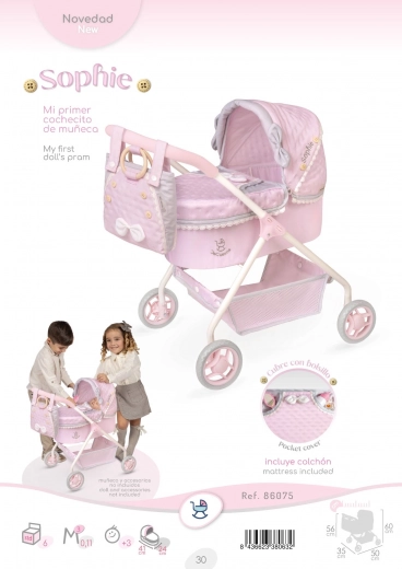 Il delizioso passeggino per bambole della collezione Sophie è stato progettato con attenzione a comfort, sicurezza e facilità d’uso. Il design rosa chiaro è completato da discreti dettagli grigi e bianchi che sottolineano lo stile romantico. Grazie al manico basso e alla struttura leggera è particolarmente adatto alle bambine più piccole.