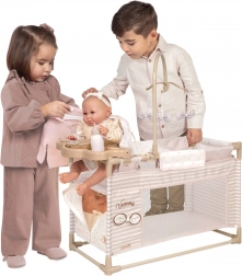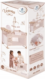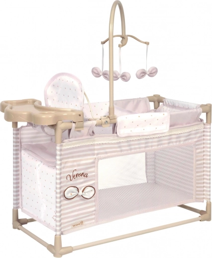L'elegante culletta per bambole della collezione VERONA conquista con i suoi ricchi accessori e il delicato design naturale. Include un carillon/giostrina con fiocchetti, un fasciatoio, una seggiolina per la pappa con set e un pratico armadietto con zip. Grazie alla lavorazione precisa e alla facile maneggevolezza è ideale per bambini dai 3 anni in su.