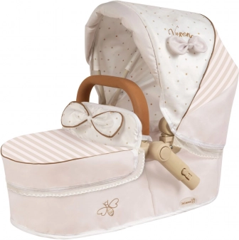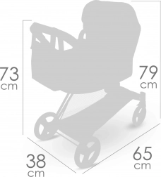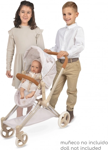 Il passeggino è pieghevole, occupa pochissimo spazio da chiuso ed è pratico da trasportare. La navicella rimovibile e trasportabile permette di portare la bambola in sicurezza, mentre la capottina regolabile, le cinture a tre punti e le ruote anteriori piroettanti garantiscono una guida comoda e fluida. Inclusa una borsa elegante e un cestello inferiore per tutto il necessario.