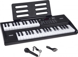 Inclusi nella confezione microfono e leggio. La tastiera è compatta, con altoparlanti integrati e comandi intuitivi: ideale per fare musica a casa, esercitare l’accompagnamento e comporre i primi brani.