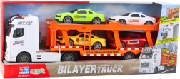 Grande camion rimorchio con quattro macchinine che offre ai bambini ore di divertimento creativo. Aspetto realistico, effetti luminosi e sonori, lunghezza 57 cm e materiale di alta qualità garantiscono resistenza e un gioco coinvolgente a casa e in viaggio.