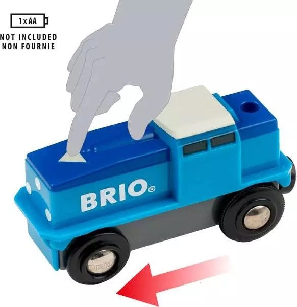 Questa locomotiva merci a batteria è pensata per i piccoli macchinisti: basta toccare la freccia sul frontale per avviare il motore e un altro tocco per fermarlo. Il controllo intuitivo favorisce lo sviluppo della motricità fine e dell’immaginazione nel gioco.