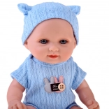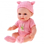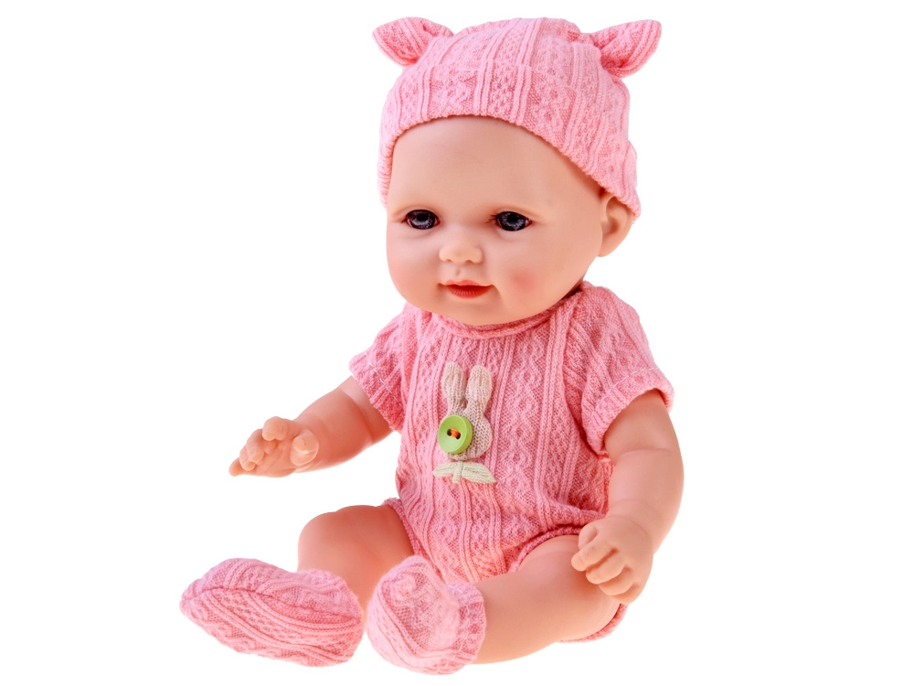La bambola ha arti e testolina mobili, quindi si può sedere o sdraiare per dormire. L’outfit è composto da morbida tutina lavorata a maglia con chiusura a strappo, facile da togliere e mettere – insieme a cappellino e scarpine stimola la motricità fine e l’autonomia del bambino. Gli abitini sono disponibili in due varianti di colore: rosa e azzurro chiaro.