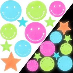 Un allegro set di adesivi fluorescenti illumina la cameretta e crea un'atmosfera da fiaba. Dopo l'esposizione alla luce, si nota la loro delicata luminescenza al buio, con smiley e stelline colorati di varie dimensioni. Grazie agli elementi adesivi in schiuma aderiscono in modo affidabile a pareti, soffitto e mobili e si possono rimuovere facilmente senza lasciare tracce. Realizzati con materiali sicuri e atossici conformi alle normative europee.