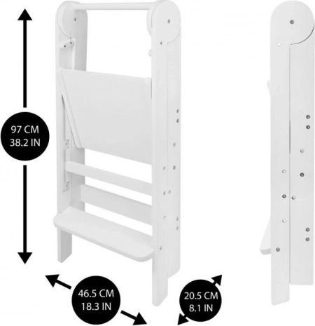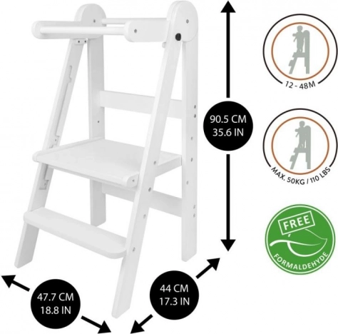 La torre di apprendimento pieghevole LOFTY aiuta i bambini a partecipare alle attività quotidiane – dalla cucina al lavarsi i denti. È realizzata in multistrato di alta qualità con sicurezza comprovata senza formaldeide, soddisfacendo le esigenze delle case moderne. Grazie al design studiato si trasporta e si ripone con facilità.