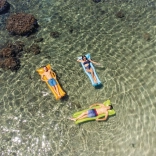Rilassati tra le onde o a bordo piscina. Il materassino gonfiabile INEX si distingue per il design originale e il colore accattivante, così è facile da vedere in acqua. Grazie al PVC di qualità è resistente a piccoli graffi e danni; le due camere d’aria garantiscono maggiore stabilità e una posizione comoda.