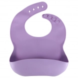 Il morbido bavaglino in silicone con ampia tasca raccoglie briciole e liquidi. La chiusura multistadio si adatta alla crescita del bambino.