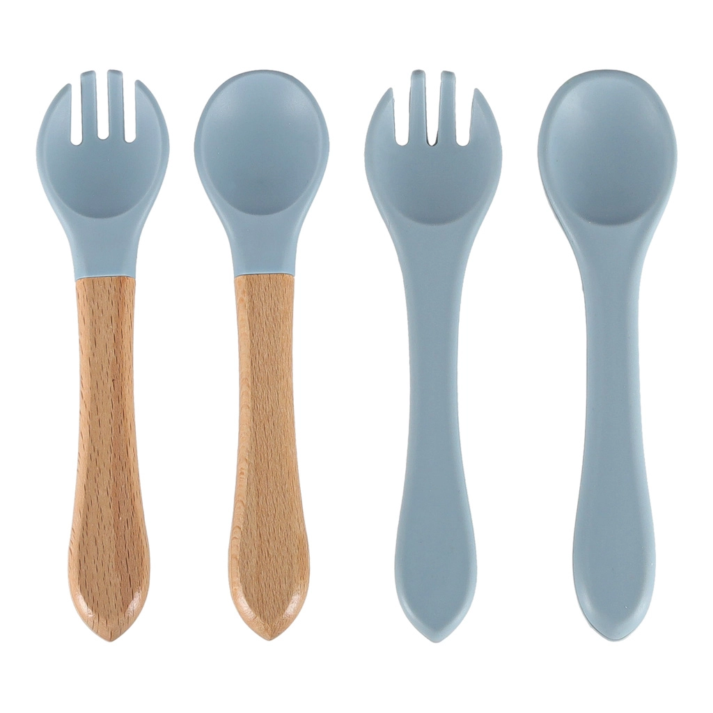 Il bavaglino in silicone regolabile con tasca profonda cattura la maggior parte dei residui e protegge i vestiti. Due set di posate (in silicone e con manico in legno) supportano le diverse fasi dell’apprendimento della presa e del raccogliere il cibo. Il bicchiere con coperchio e cannuccia aiuta ad allenare il bere autonomo senza inutili rovesciamenti.