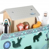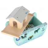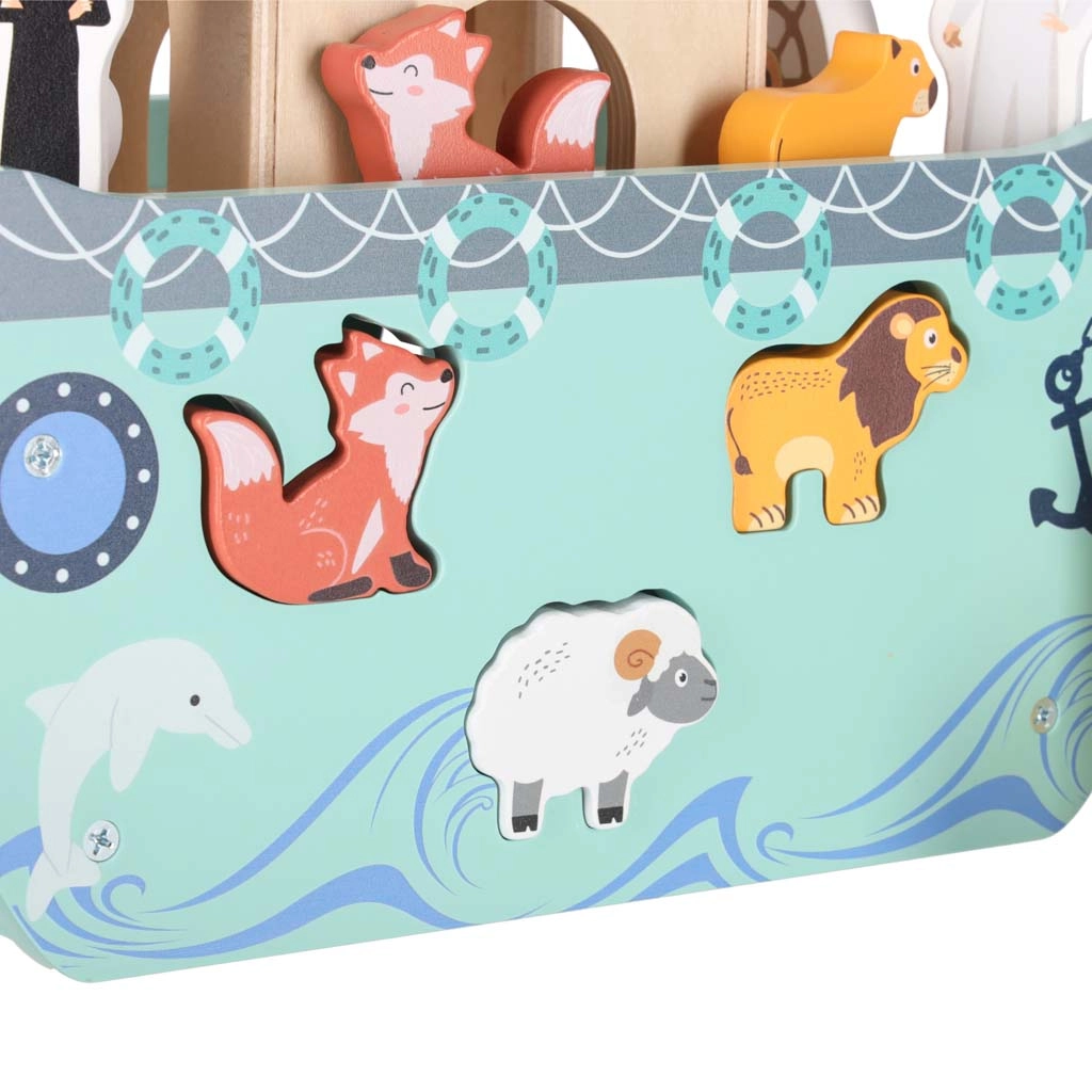 Inclusi coppie di animali, due personaggi e accessori come rampa, timone e arcobaleno. I bambini possono caricare l’arca, governarla e creare le proprie storie.
