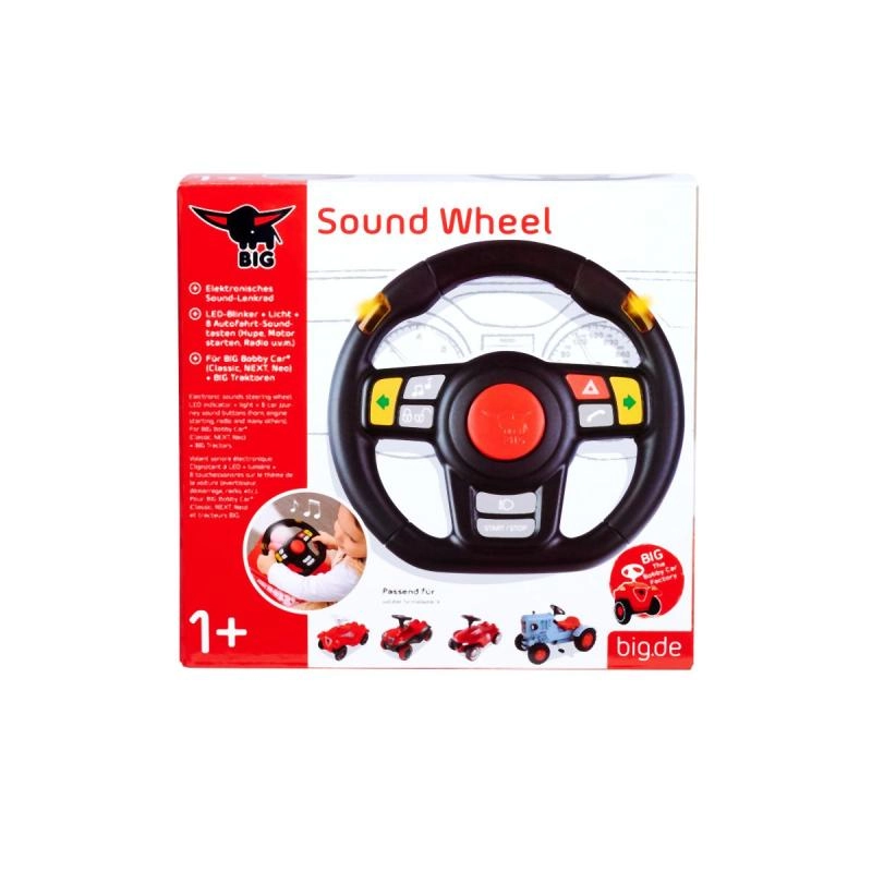 Aggiungi ancora più divertimento alla guida dei bambini con questo volante multifunzione BIG. Offre 8 suoni realistici, indicatori di direzione a LED, clacson e effetti luminosi. È resistente all’acqua e completamente compatibile con i cavalcabili Bobby Car dal 2010 (Classic, NEO, NEXT).