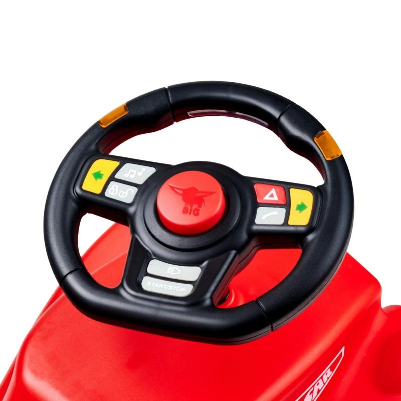 Il volante multifunzione BIG trasforma ogni corsa sul cavalcabile in una vera avventura. I bambini apprezzeranno le frecce con luci LED, il clacson, il suono di avviamento, la radio e altri effetti realistici. Grazie al design resistente all’acqua è ideale anche per giocare all’aperto.