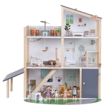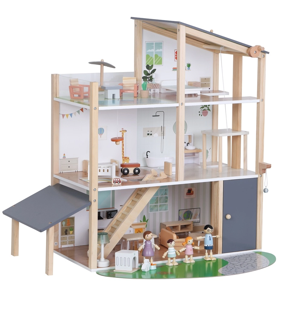 La casa offre diversi livelli con cucina, soggiorno, bagno, camera da letto e cameretta. Le facciate e i lati aperti garantiscono un facile accesso per giocare e sistemare comodamente i mobili.
