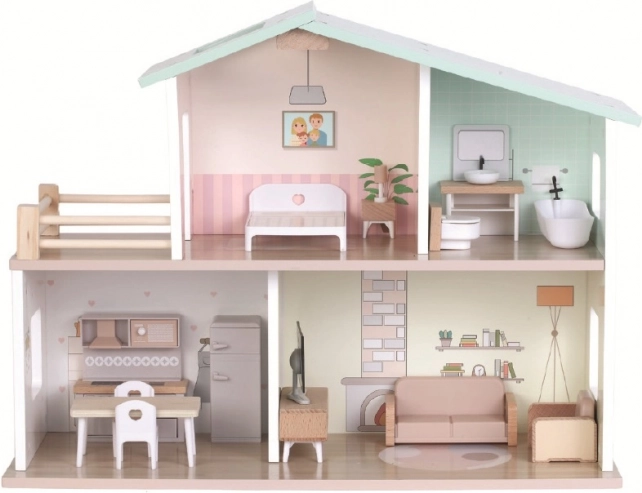 Casetta delle bambole in legno Anička di 2Kids Toys. 16 pezzi, dotazione completa, fattura di qualità, montaggio semplice. Ideale per bambini dai 3 anni.
