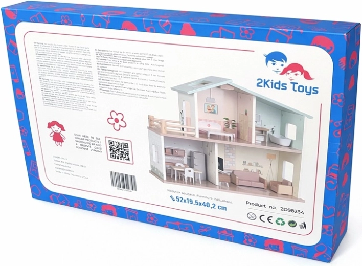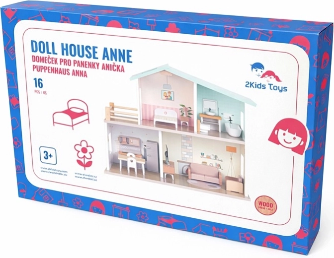 Scopri la bellissima casetta delle bambole in legno Anička di 2Kids Toys con due piani, balcone e stanze completamente arredate. Grazie a 16 pezzi di mobili e accessori, i bambini si divertiranno per ore con giochi di ruolo creativi, sviluppando fantasia e abilità sociali. La lavorazione in legno di qualità, i colori delicati e la struttura stabile la rendono un incantevole complemento per la cameretta. Inclusi istruzioni di montaggio; la casetta viene consegnata smontata. Adatta dai 3 anni.
