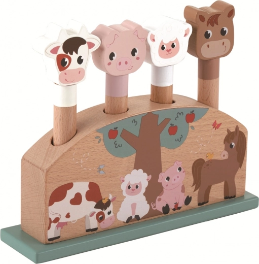 Scopri il divertente gioco pop-up in legno con animaletti della fattoria che saltano fuori dalla base quando premi la molla. Questo gioco è perfetto per lo sviluppo della motricità fine, offre una base stabile e conquista con il suo design adorabile in piacevoli tonalità naturali. Idea regalo ideale per bambini a partire da 1 anno.