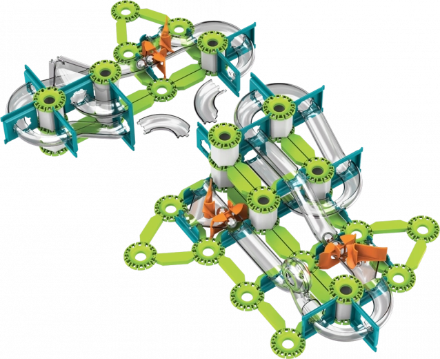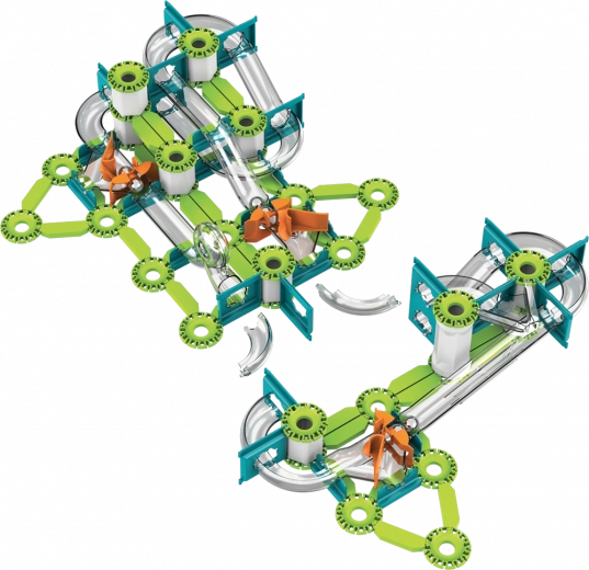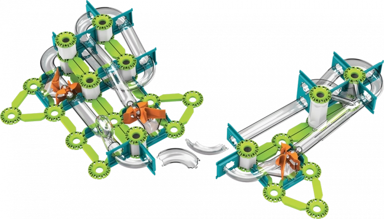 Assembla fino a 11 circuiti e loop diversi, dove le biglie sono mosse dalla gravità. Prova discese veloci, curve e looping.