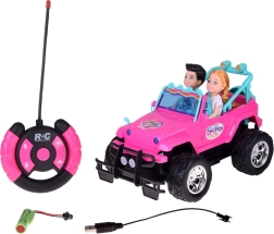 Set divertente per piccoli e grandi piloti: fuoristrada RC rosa con ruote grandi e due figurine (ragazza e ragazzo). L'auto ha fari anteriori luminosi, pneumatici in gomma per una buona aderenza, cinture di sicurezza regolabili sui sedili e controllo in 4 direzioni tramite telecomando rosa. Inclusa una batteria ricaricabile 3,7 V con ricarica USB.