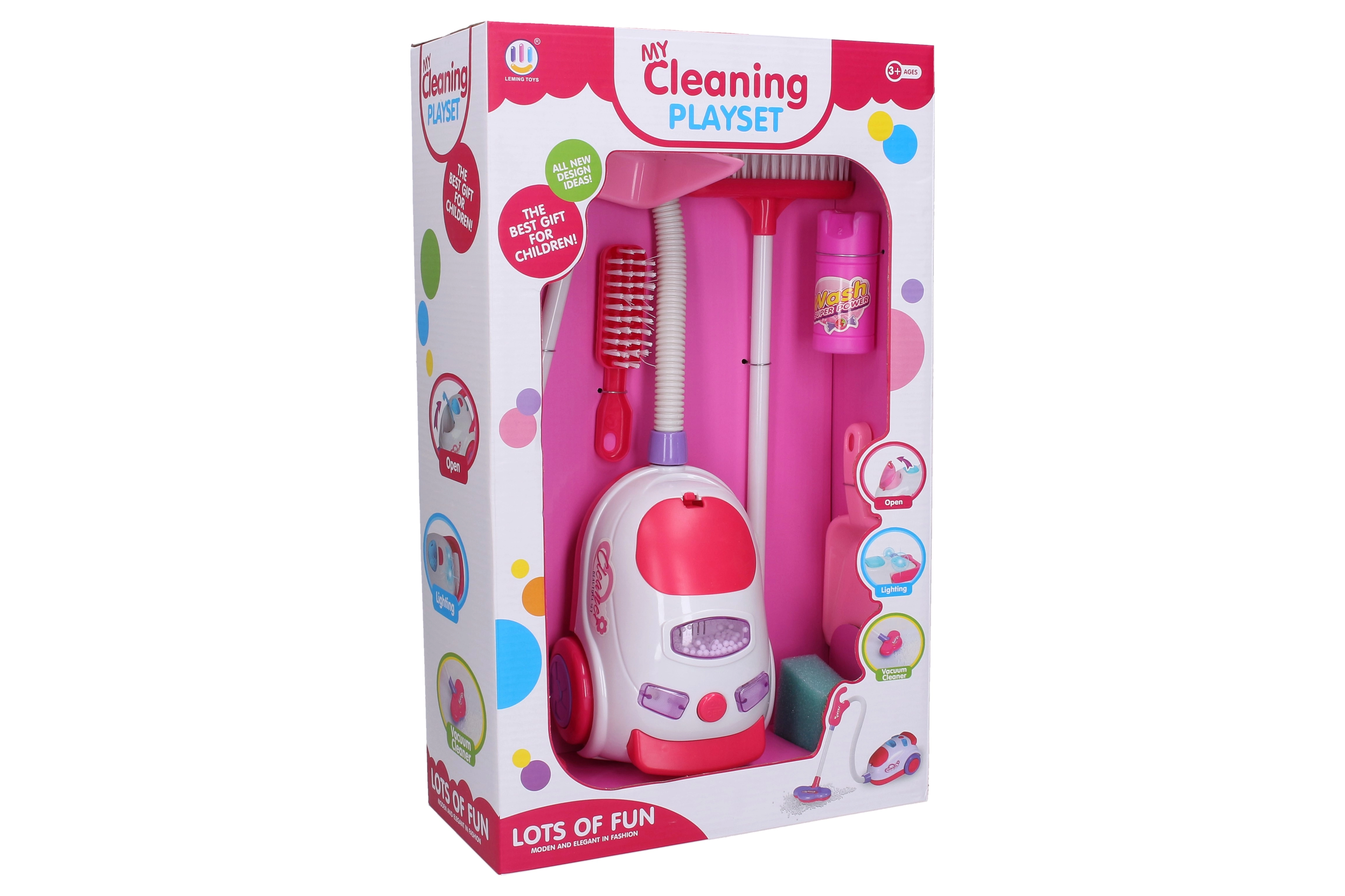 Divertente set per le pulizie per bambini con aspirapolvere funzionante per palline di polistirene ed effetti luminosi. Include 9 pratici accessori per un gioco domestico realistico. Aspirazione funzionante, effetti luminosi e ricchi accessori stimolano la fantasia e sviluppano la motricità fine.