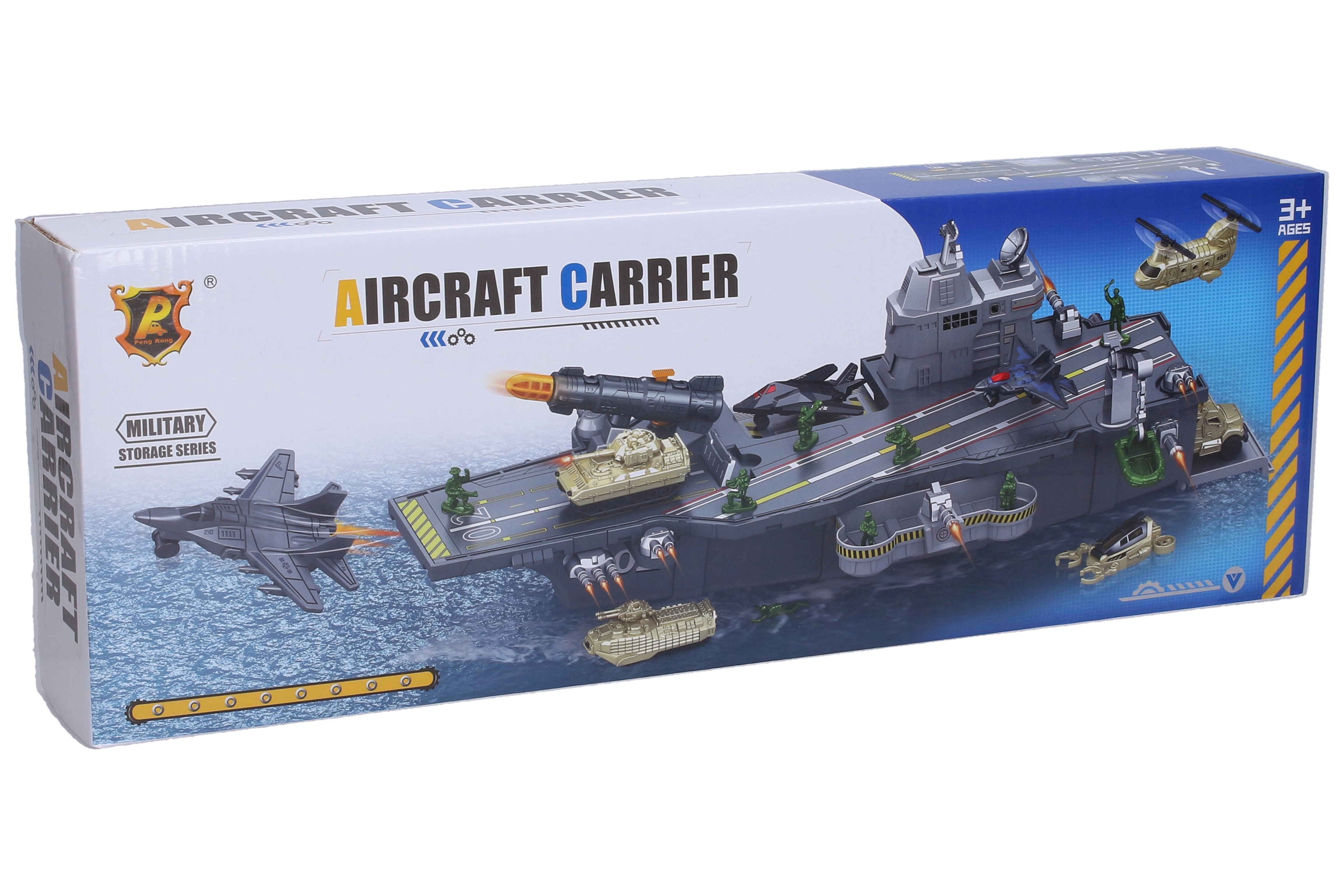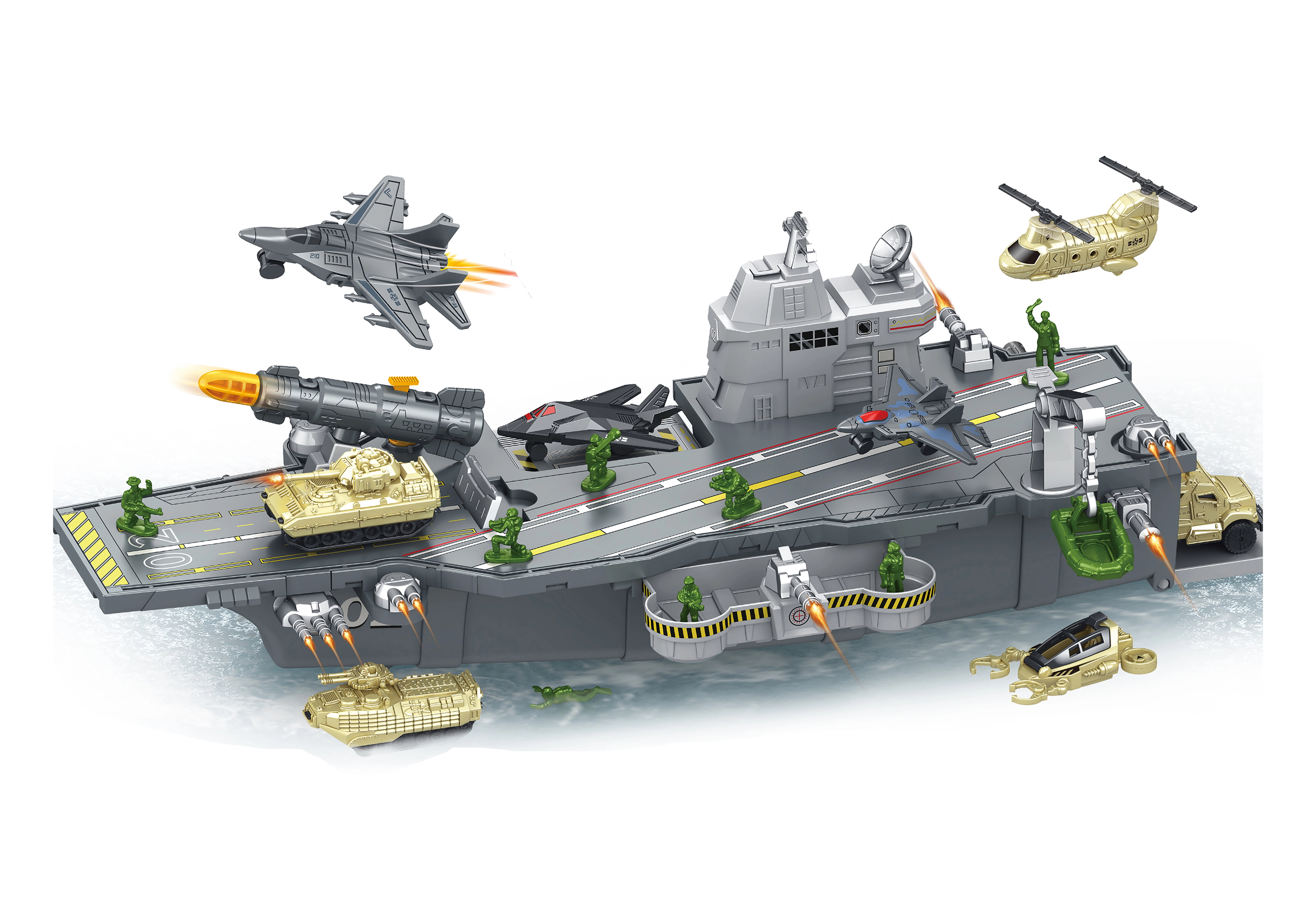 Scopri il mondo d'azione delle battaglie navali con questo set dettagliato di portaerei lungo 47 cm, completato da veicoli e miniature di soldati. Il set offre elementi manualmente mobili senza effetti luminosi e sonori, montaggio semplice seguendo le istruzioni riportate sulla confezione e dimensioni compatte adatte al gioco in casa.
