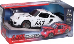 Gli effetti si attivano facilmente tramite pulsanti sul tetto – scegli il suono del motore, la sirena o la musica. Grazie alle dimensioni pratiche, l’auto è ideale per i viaggi e le gare in casa. Disponibile in tre varianti di colore: rosso, nero e bianco.