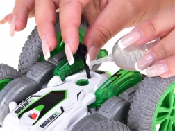 Questa auto acrobatica RC super veloce porta le gare domestiche a un nuovo livello. Va avanti e indietro, sa ruotare a 360°, ribaltarsi e correre su entrambi i lati. I LED anteriori e il realistico vapore acqueo creano un effetto “fumo” che dona un tocco scenografico alla corsa.