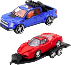 Questo set universale combina un pickup blu con rimorchio a due assi e una elegante auto sportiva rossa. I bambini possono caricare, trasportare e scaricare il veicolo tramite la rampa, creare scenari di gara e sviluppare immaginazione, motricità fine e coordinazione.