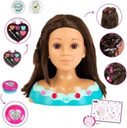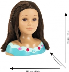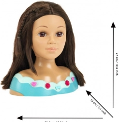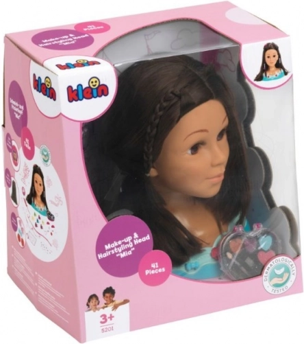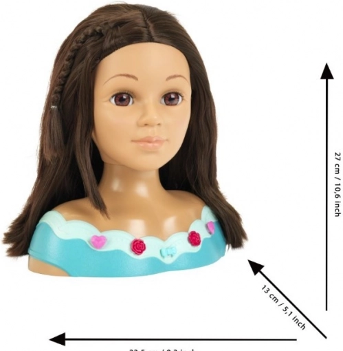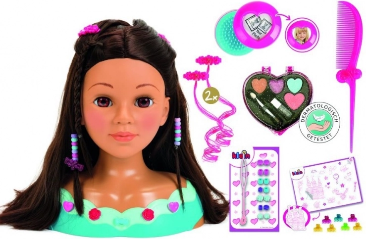 La testa per acconciature e trucco Mia offre tutto ciò di cui i piccoli parrucchieri e truccatori hanno bisogno. I lunghi capelli lavabili possono essere pettinati, spazzolati, intrecciati e decorati con mollette o perline. I cosmetici inclusi, pensati per i bambini, sono dermatologicamente testati, quindi sicuri per il gioco e per la pelle delicata.