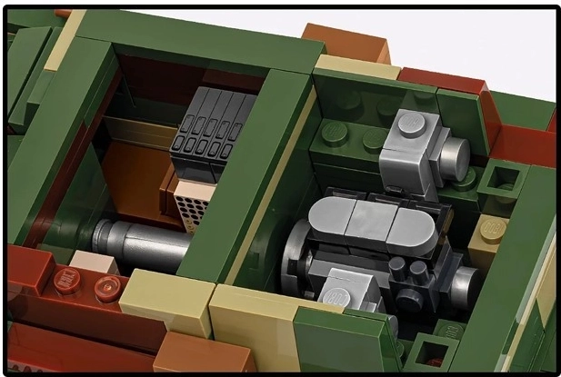 Grazie alla torretta girevole, al cannone regolabile e ai cingoli mobili, puoi presentare il modello in diverse pose di combattimento. Sono inclusi anche il motore estraibile, una targhetta da collezione bianca con nome e scala e la minifigure del comandante con accessori. Tutti i dettagli grafici sono realizzati con stampe permanenti – nessun adesivo.