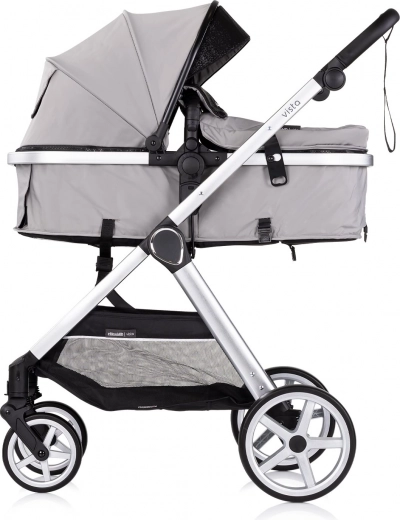 CHIPOLINO Vista Cloud Grey è un pratico passeggino 2 in 1 che combina navicella e seduta sportiva in un’unica soluzione. Grazie al design intelligente, l’unità di seduta si trasforma facilmente in navicella per il neonato e viceversa, con possibilità di montaggio fronte strada o fronte genitore. Il leggero telaio in alluminio con effetto anodizzato e le sospensioni su tutte le ruote garantiscono una guida confortevole e stabile in città e al parco.