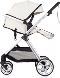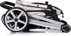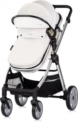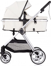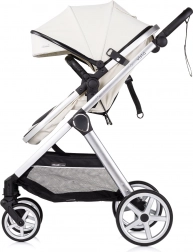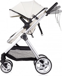 Elegante e pratico passeggino 2in1 per neonati e bimbi piccoli con telaio in alluminio leggero, unità di seduta reversibile (fronte strada e fronte genitore) e possibilità di trasformazione in navicella. Offre piena sospensione su tutte le ruote, maniglione regolabile in altezza con cinturino di sicurezza, capottina regolabile con parasole e finestrella e cestello capiente. Inclusi coprigambe imbottito e borsa fasciatoio.