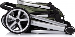 Telaio in alluminio leggero con sospensioni su tutte le ruote, freno posteriore collegato e cintura a 5 punti con morbide imbottiture assicurano tranquillità e sicurezza in ogni tragitto.