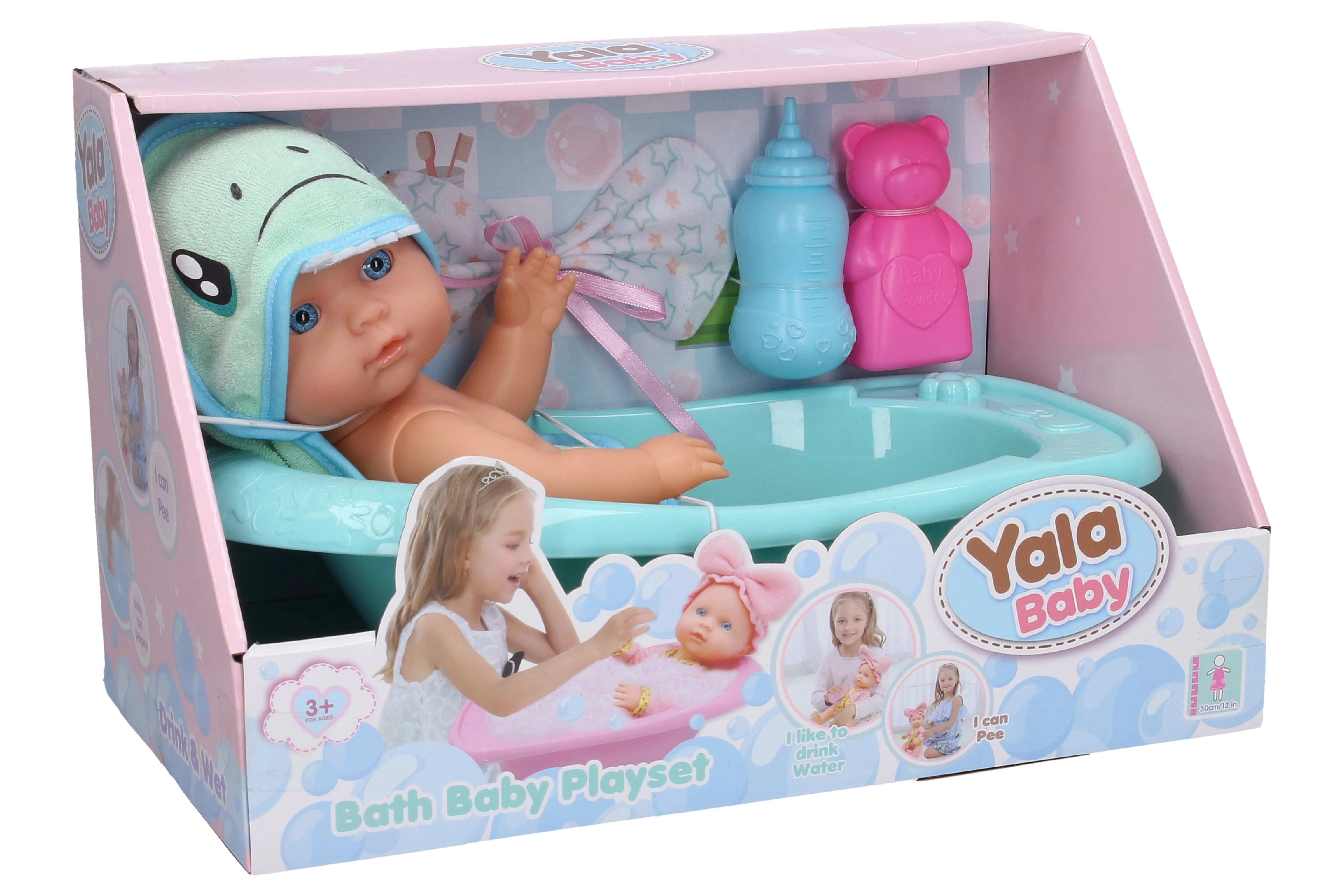 • Set da bagnetto completo – bambolotto, vaschetta, accessori per il bagnetto e accappatoio.