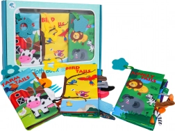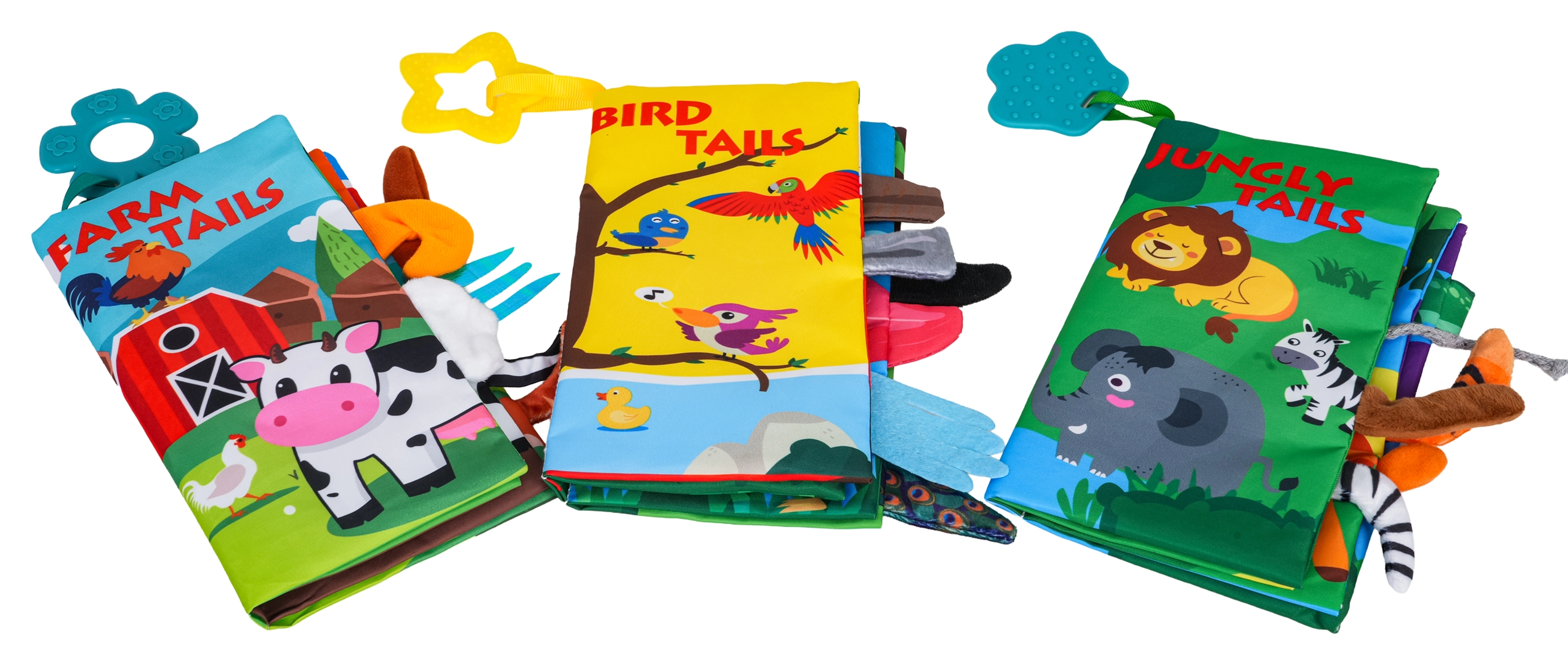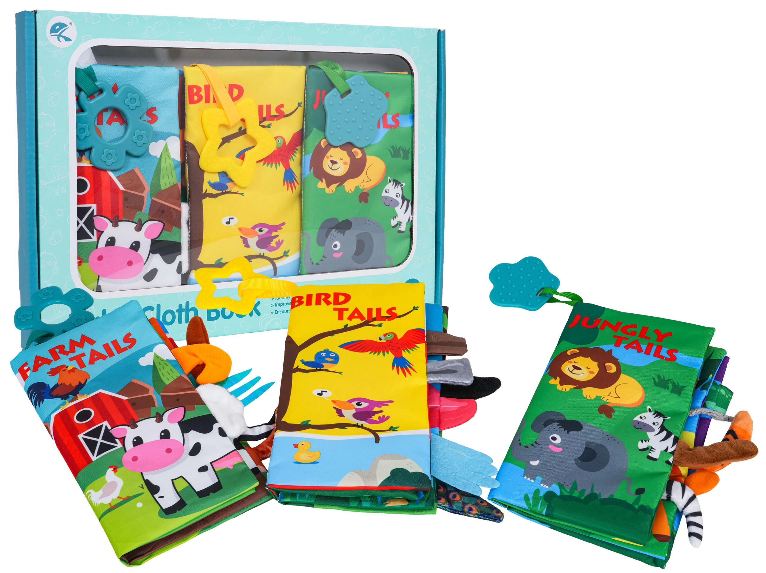 I tre morbidi libri di stoffa Farm Tails, Bird Tails e Jungly Tails offrono ai bambini un gioco sicuro e stimolante già dai 3 mesi. Illustrazioni colorate, effetti fruscianti e elementi tattili come codine, ali e orecchie favoriscono lo sviluppo sensoriale, la coordinazione mano-occhio e il primo apprendimento dei nomi degli animali in inglese.