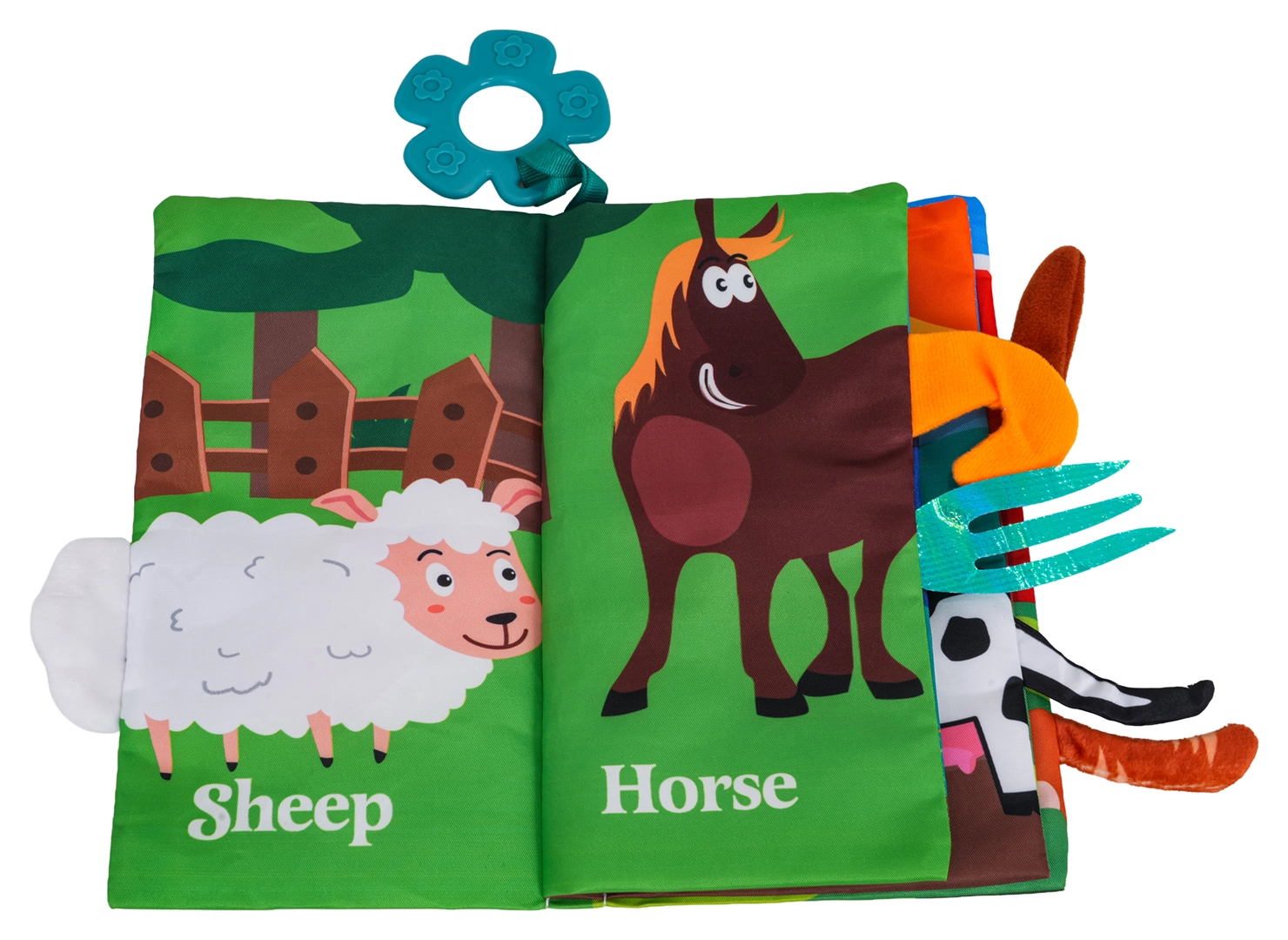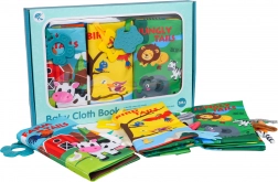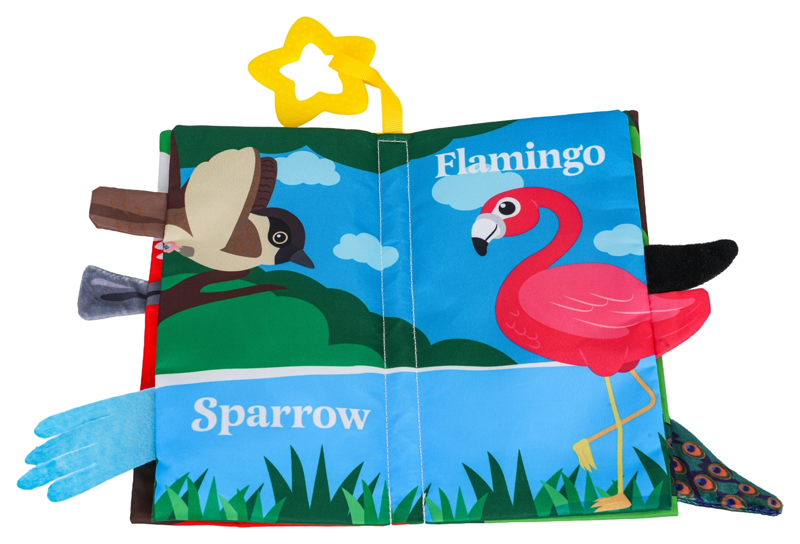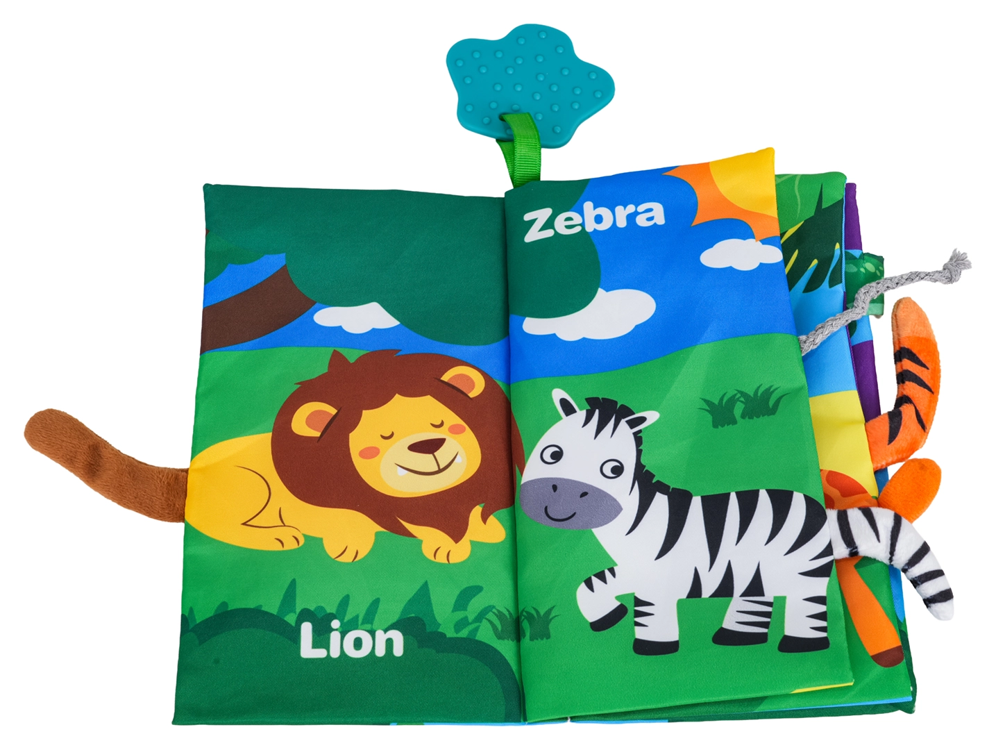 Scopri un adorabile set di tre libri di stoffa per bambini dai 3 mesi, che sviluppano i sensi e la motricità fine. Ogni libretto offre pagine fruscianti, morbide texture, codine di animaletti sporgenti e un pratico mordigomme/clip per il fissaggio. I temi fattoria, uccelli e giungla affascinano con illustrazioni colorate e semplici didascalie degli animali in inglese. I libri di stoffa sono leggeri, impermeabili e facili da pulire: ideali a casa e in viaggio.