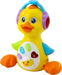 Questo colorato anatroccolo interattivo è progettato per coinvolgere i bambini a partire dai 18 mesi. Grazie ai pulsanti si attivano allegre melodie, canzoncine e suoni, mentre le lucine sulle cuffie e sul cuoricino lampeggiano a ritmo. L’anatroccolo sa muoversi in avanti e oscillare allegramente da un lato all’altro, rendendo il gioco dinamico e coinvolgente.