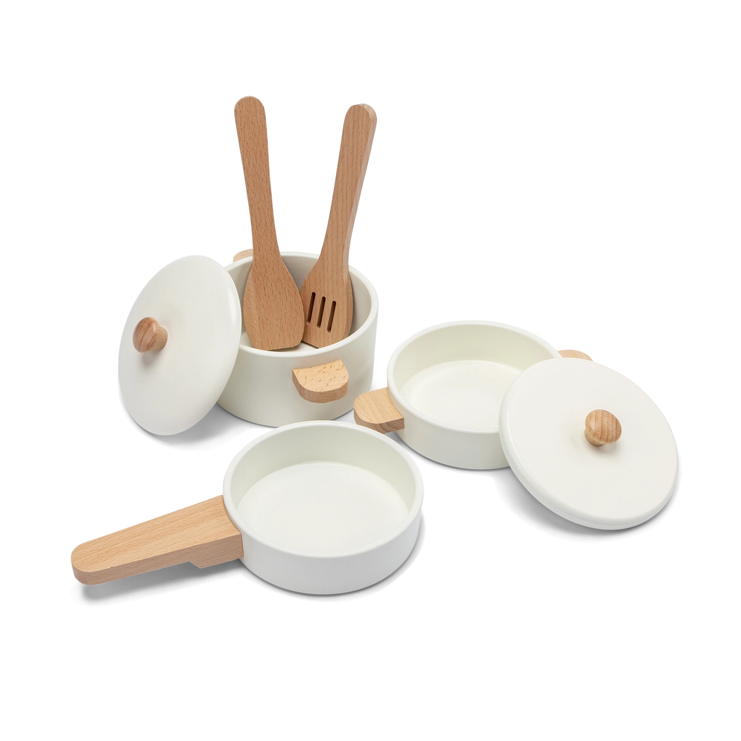 Una cucina giocattolo alla moda merita solo il meglio: questo set di stoviglie in legno bianco offre lavorazione di qualità, impugnature in legno sicure e coperchi rimovibili. Stimola creatività, motricità fine e gioco di ruolo – ideale per i piccoli chef che amano imitare gli adulti.