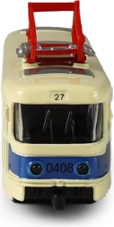 Modello elegante del leggendario tram T3 con scritta PRAGUE in scala 1:87 che farà felice ogni collezionista e amante di Praga. Offre struttura in metallo, meccanismo a retrocarica, lunghezza 16 cm e porte centrali apribili manualmente.