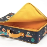 La valigetta tessile per bambini DJECO con delicato decoro spaziale è ideale per viaggi, weekend dai nonni e per il trasporto quotidiano di piccoli oggetti. La tela robusta e il trattamento impermeabile proteggono il contenuto, mentre l’organizzazione interna studiata mantiene tutto al proprio posto.