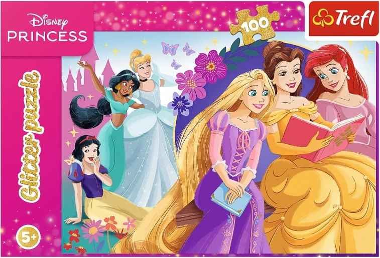 Puzzle scintillanti TREFL Principesse – Bagliore dell’amicizia, 100 pezzi. Effetto lucente, dimensioni 48 × 34 cm. Divertimento e decorazione perfetta per la cameretta.