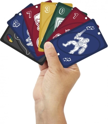 I giocatori calano carte abbinate per colore o numero; non mancano azioni come Salta, Inverti e Pesca Due. Divertimento da 2 a 10 giocatori.