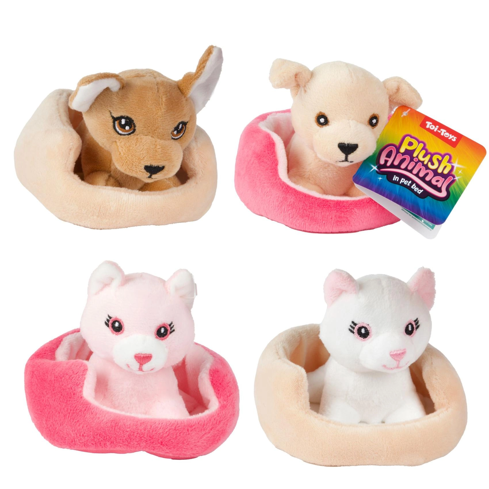 Questa dolce gattina o cagnolino di peluche in un lettino accogliente è il compagno perfetto per il gioco quotidiano e la nanna. Grazie al morbido peluche e alle dimensioni compatte si impugna facilmente anche dalle manine più piccole e incoraggia fantasia e giochi di cura.