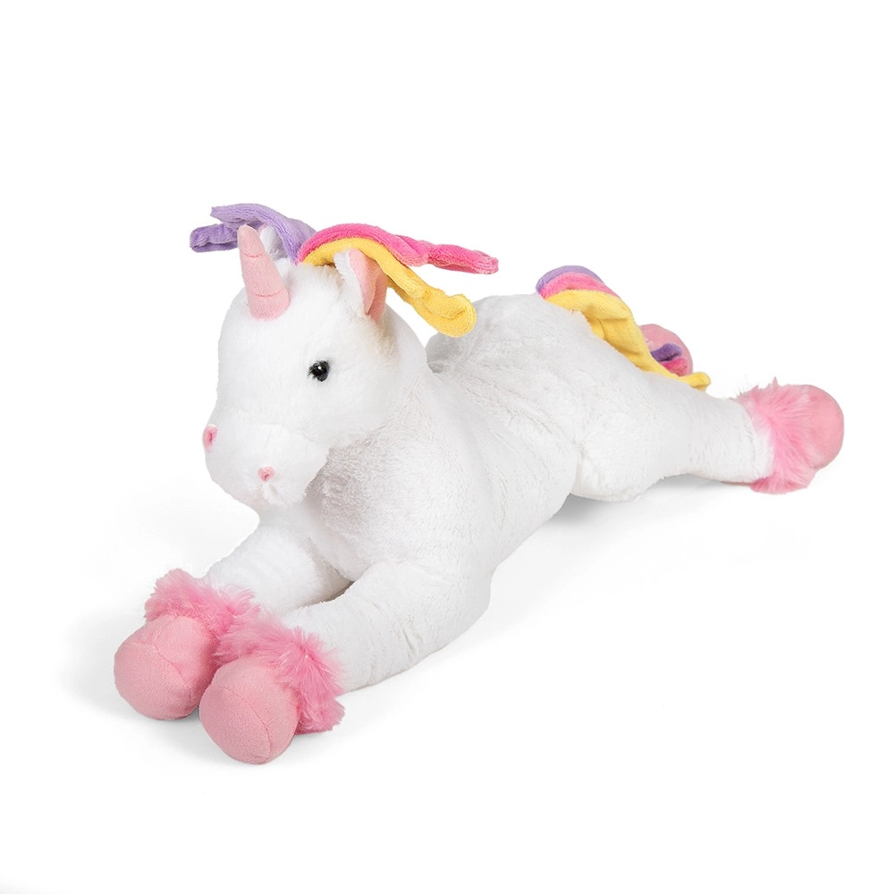 Dettagli unici come occhi ricamati, corno scintillante e criniera e coda colorate stimolano la fantasia dei bambini e portano allegria nel gioco quotidiano. Grazie alla pratica dimensione di 43 cm, l’unicorno si trasporta facilmente ed è un ottimo compagno di viaggio.
